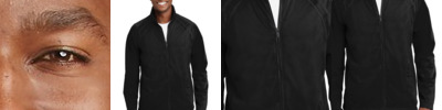 - 100% poly stretch shell bonded to textured grid fleece with a laminated film insert for wind and water resistance
