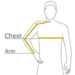 | Arm | 30-30 3/4 | 30 3/4-31 1/2 | 31 1/2-32 | 32-32 1/2 | 32 1/2-33 | 33-33 3/8 | 33 3/8-33 3/4 | 33 3/4-34 1/2 |